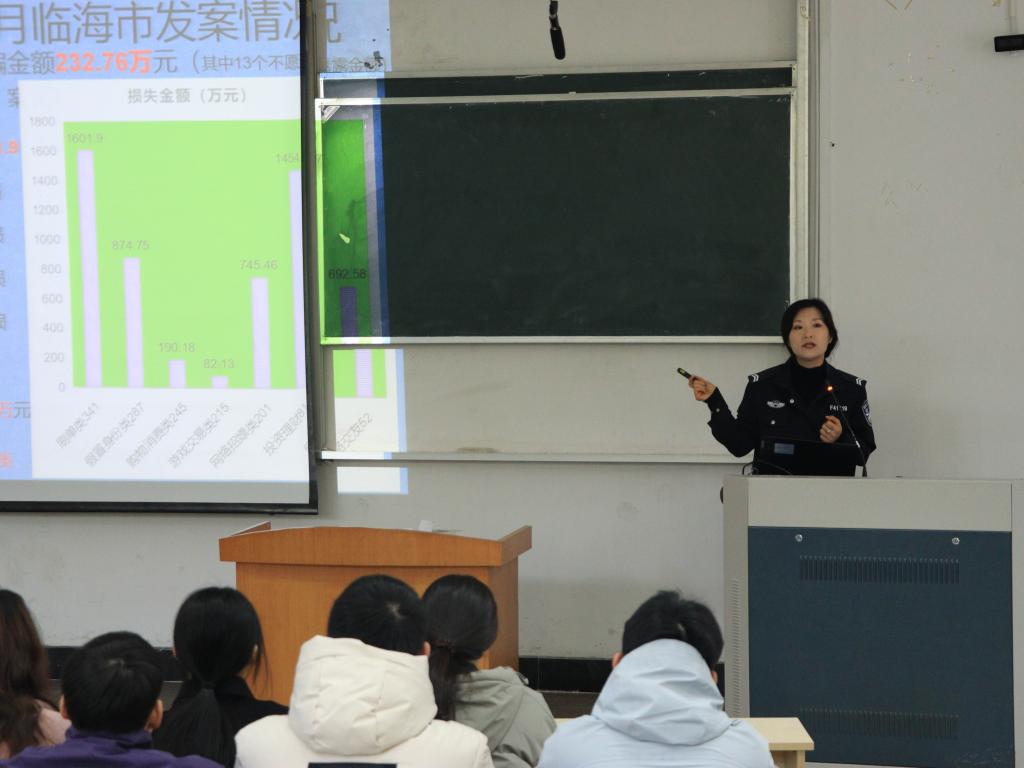 12月12日上午,VSport体育于 A5 教室举办普法教育全覆盖讲座。此次讲座由临海市公安局及大洋派出所法治宣讲团的徐扬益主讲,24级中教与历史专业的全体同学参加。讲座聚焦网络电信诈骗主题,深入剖析了当下诈骗现象的严重性。