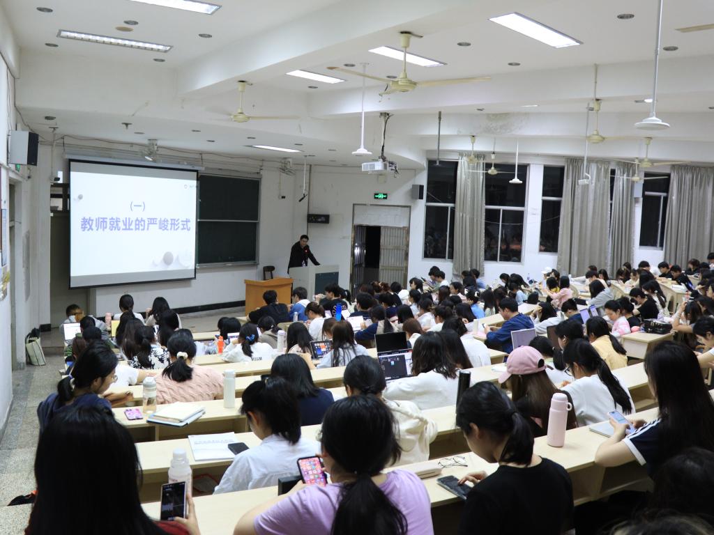 会议伊始,黄永鑫向同学们强调了大二、大三阶段对人生规划的重要性。他勉励同学们要尽早确定毕业后的方向,以便提前做好充分的准备。在谈及教师就业现状时,他指出,受人口政策调整和编制缩编双重因素的影响,教师岗位的竞争日益激烈,趋于白热化状态。同时,他还提到山东、杭州等地教师编制逐渐向合同工转变的趋势,这一就业压力让在场的同学们深感警醒。