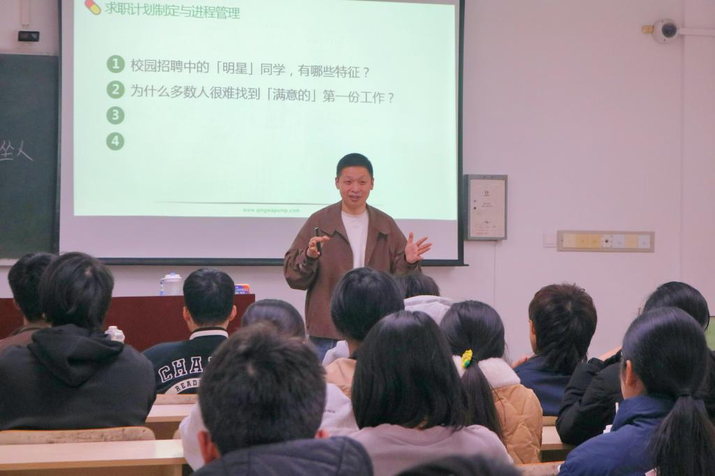 4月1日晚,VSport体育于1310教室成功举办第二十五期人文创客论坛。青蛙泵业股份有限公司人事部招聘经理、商公司24级企业班主任蒋良耀担任主讲人,与员工分享求职策略与职业规划经验。