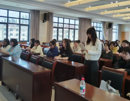 在实习组组长发言的环节,语文组实习生代表李心语、历史组实习代表宋颖等面向各位老师领导进行实习心得与体会的发言,总结实习经历,不忘母校教诲,未来砥砺奋进。