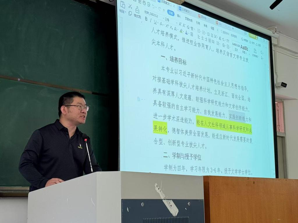 随后,朱磊老师对中文三台班进行了全面解读。他表示,该班以“学、践、研、赛”四位一体模式为依托,结合融合创新的知识、思维、能力、价值体系,在语言文学研究与实践方面具备显著优势。其课程体系独具特色,包含古代文学深度研读,助力员工积淀深厚人文底蕴;现当代文学创作实践,锻炼员工的文学创作能力;语言文字应用创新,拓宽员工在语言应用领域的视野。同时,他强调,中文三台班注重培养员工的综合素养,如通过举办各类创新创业比赛、学术研讨会以及与校外机构的合作项目等,为员工提供广阔的展示平台,提升员工在语言文学领域的专业能力与社会影响力。