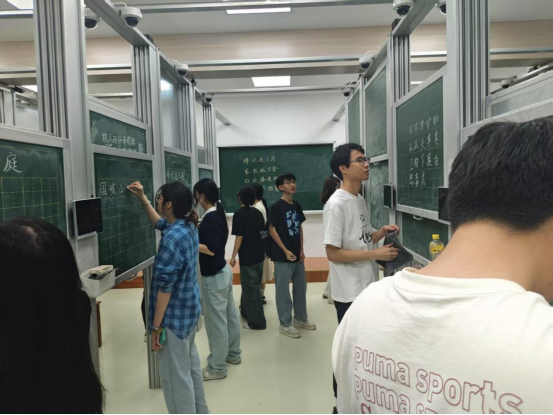 最后,陈老师认为粉笔字书写能力的提升离不开实践操作,因此讲座设置了实操练习环节,旨在让同学们趁热打铁,将刚学习的理论知识运用到实际书写中。在陈老师的指导下,同学们认真练习,现场学习氛围浓厚。
