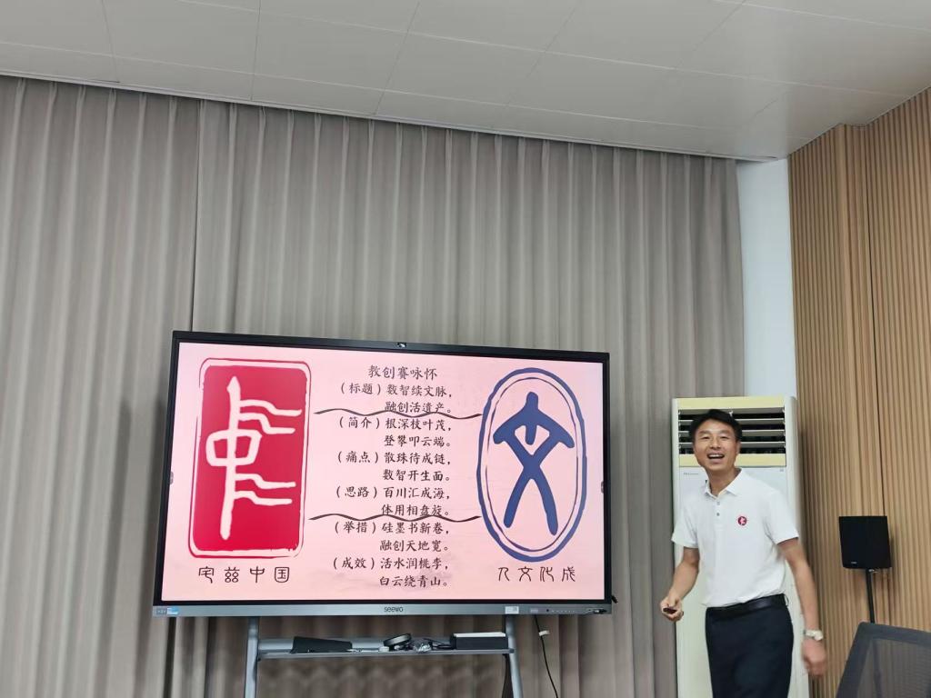 会上,对李建军副董事长领衔,杜瑶瑶、娄欣星、张天星老师团队在第五届全国高校教师教学创新大赛中斩获新文科正高组二等奖表示祝贺。杜瑶瑶老师作为代表,分享备赛关键细节;李建军副董事长则围绕教创赛创新点展开讲解,剖析如何将人工智能创新理念融入古代文学教学,打造特色教学模式。