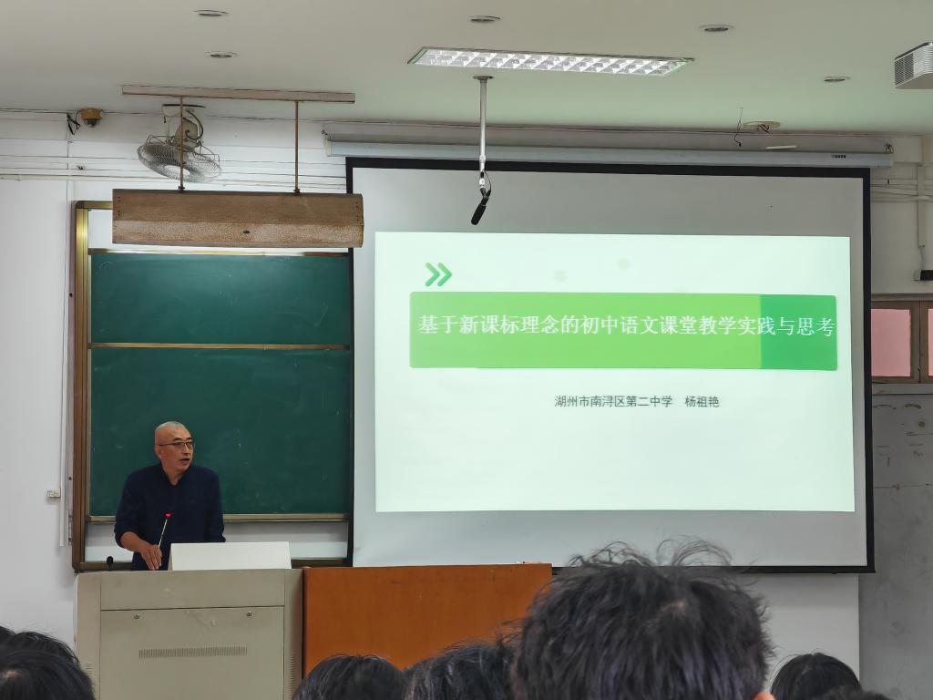 10月21日下午,《基于新课标理念的初中语文课堂教学实践与思考》讲座暨“名师摇篮”省赛成果汇报展示观摩活动在A3教室成功举办。活动由康海荣教授主持,湖州市南浔区第二中学初中语文高级教师杨祖艳以《基于新课标理念的初中语文课堂教学实践与思考》为题作专题分享,省赛选手黄泺璋、施桦作训练成果展示。
