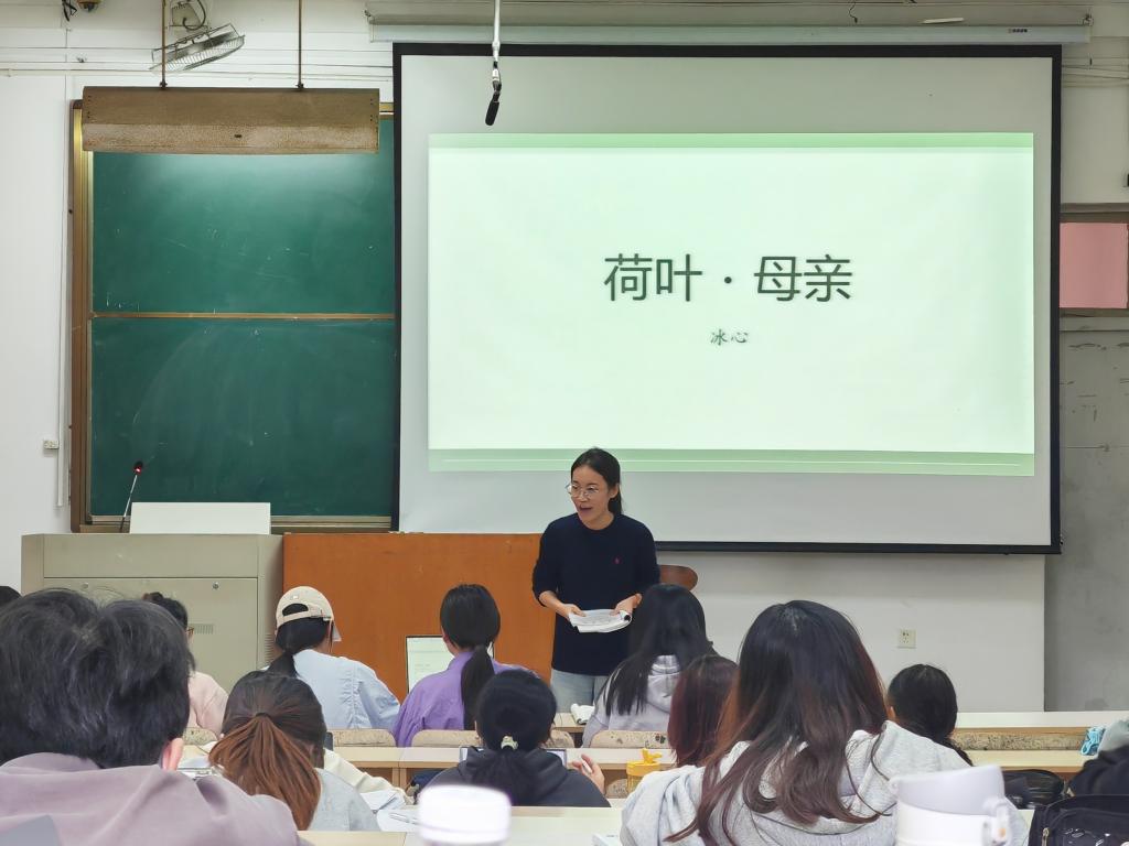 模拟授课结束后,杨祖艳老师对两位同学的课堂进行专业点评。她首先肯定了两位同学在语言表达、板书设计及整体教学设计上的亮点;随后重点强调,教学中需重视处理员工随机回答,确保问题设置兼具开放性与可答性,做到让员工有话可说;同时针对文本特点提出建议,如《荷叶·母亲》应突出情感、《金色花》需聚焦事件讲述,可通过分组朗读深化文本特色;此外,还明确区分象征与托物言志的概念差异,并指出教学设计需注重问题环环相扣,帮助师生理清课堂思路,为师范生后续教学能力提升提供关键指导。