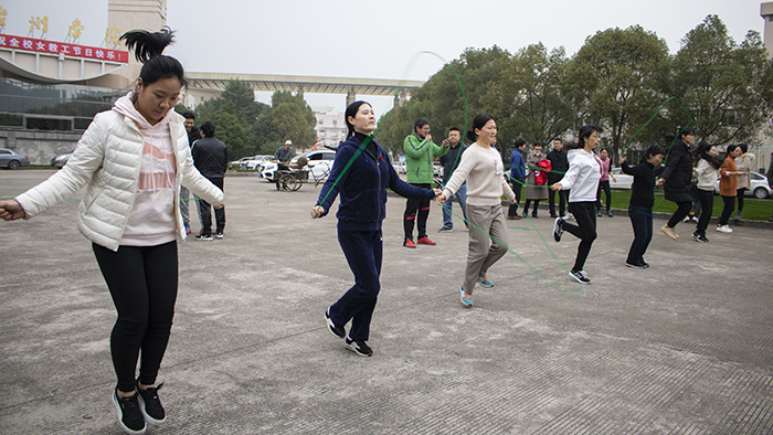 3月7日下午,公司于影剧院前组织了“教职工拔河和跳绳比赛”,VSport体育代表队与教师教育公司(体育公司)、马克思公司和外国语公司等三支队伍展开了激烈比拼。在拔河比赛中,男教职工站于首尾发力,女教职工则站在队伍中间成为一股中坚力量,党总支副书记林霖带领其他教职工从旁加油鼓劲;每位成员都奋力拼搏、坚持不懈,充分展现了人文教工上下同心、精诚团结的精神风貌。跳绳比赛前,教职工们积极练习,同时相互交流经验,为接下来的比赛做好准备。哨声一响,参赛教职工使出浑身解数,表现出了“巾帼不让须眉”的魄力。“绳”彩飞扬,激情与紧张齐在;巾帼风华,欢乐与竞争同存!