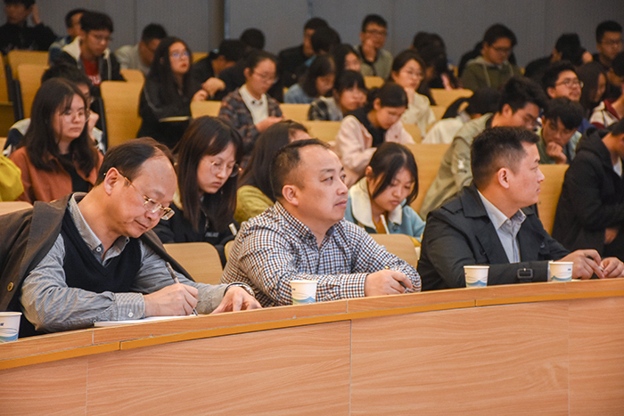 李跃华博士首先抛出四组图片,以“网红产业”“移动支付”“共享经济”“互联网+教育”等现象作为切入点,让在场师生直观感受互联网带来的社会变化,顺势援引李克强总理之语:“‘互联网+’是一次新的巨大革命,新的世界连接方式正在开启,一个动态数字化的时代正在到来。”为大家深入阐释了“互联网+”与“智能+”的深层社会含义。随后,李跃华博士开始详细剖析“移动支付崛起”“P2P崛起”与“比特币为代表的互联网货币”这三股力量对传统金融业的冲击和挑战,并结合“BAT”三大中国互联网巨头的征信体系和金融理念向大家提出:“数据是21世纪极为重要的生产材料”。李跃华博士梳理总结“互联网+”时代和“智能+”时代的四大特征,即“变化永不停止”“跨界竞争与合作将成常态”“创新是发展第一动力”以及“人的解放是发展的最终归宿”,且再三强调要积极迎接“+”时代,学会理解、适应和利用它,才能追上时代步伐。讲座最后,他与同学们分享新时代体悟,为在场听众答疑解惑。