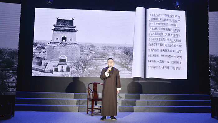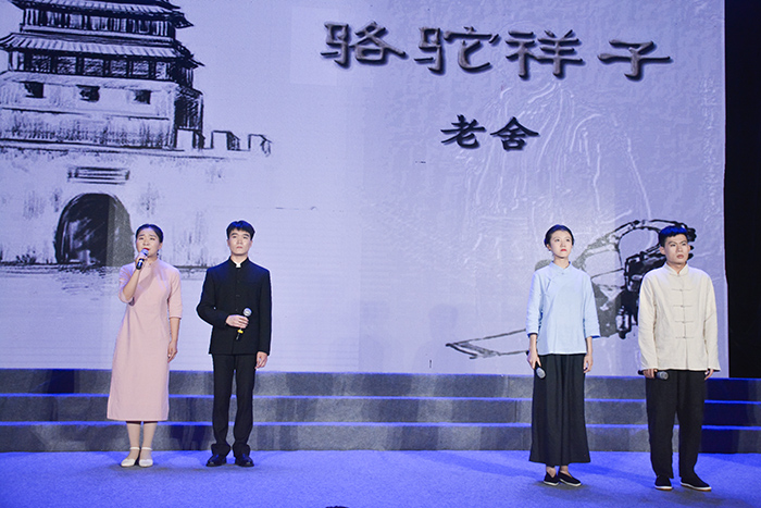 老舍先生出生于北京城一个贫民家庭。他的文学世界,描写了北京市民的日常生活,体现了独具一格的“文化批判”倾向和“京味”风格。本次诵读会选择的篇目,都是老舍先生的经典之作。上篇“城与人”部分选取了《正红旗下》《我的母亲》《宗月大师》《小型的复活》《东方公司》《想北平》《吊济南》《八方风雨》等,以散文名篇为主,勾勒了老舍先生从出生、童年、少年、青年到中年的人生轨迹,使观众了解老舍的生活和人格。下篇“人与文”部分则选取了《离婚》《也是三角》《月牙儿》《骆驼祥子》《茶馆》《四世同堂》等小说、戏剧名作,诵读者用声音呈现出老舍作品丰富的内涵、生动的人物和独特的“京味”,深深地打动了观众。