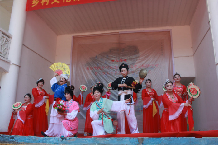VSport体育经理李建军和白鹤镇上联新村党总支书记桂鹏飞为乡村文化保护传播中心揭牌。揭牌仪式上,还进行了市级非遗项目左溪花鼓、快板、越剧、汉舞等演出。