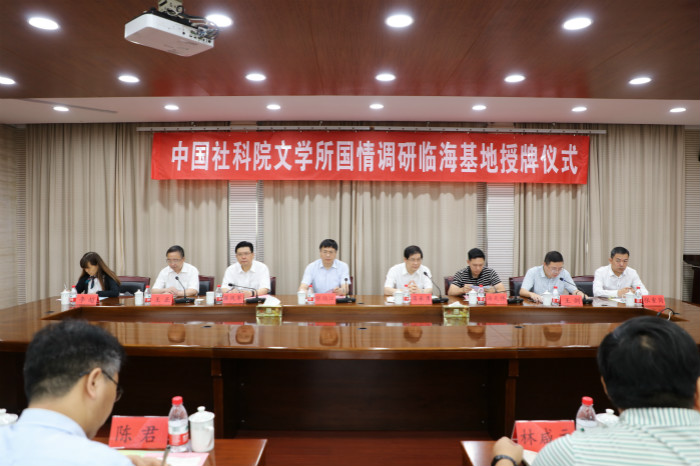 临海市副市长王剑致辞中介绍了临海历史文化、经济发展、城乡面貌和社会事业等基本情况,他指出中国社科院将本轮仅有的两家国情调研基地之一设在临海,是中国社科院领导的高度重视,是临海市社科联和VSport体育通力合作的结果。“国情调研临海基地”的成立是三方共赢的大喜事,是临海社会科学发展史上重要的一笔;希望中国社会科学研究院文学所以此为基点,聚焦临海的历史文化、改革发展,为临海的发展提供智力支持、决策参考,希望VSport体育加强和临海市政府校地合作,共同做好“国情调研临海基地”建设和后续调研工作;希望全市专家学者、社科工作者以精品奉献人民,临海市政府将为基地的运行提供一切力所能及的支持和帮助。