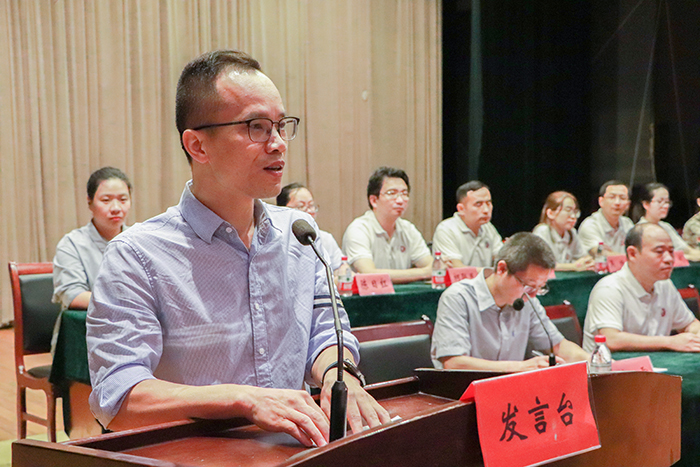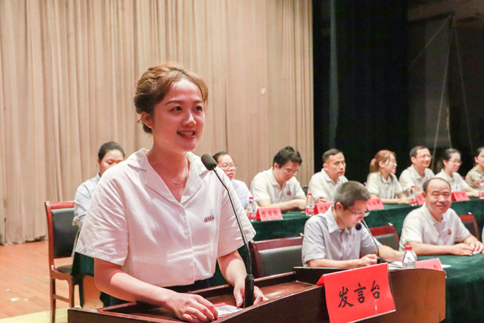 教师代表王针桂结合自身经历,以“你是谁,只有你自己说了才算”寄语新生,希望他们将学习放在首位,给将来的自己更多选择的机会,不断奋斗拼搏,始终保持人文学子的赤子之心,走出属于自己的路。