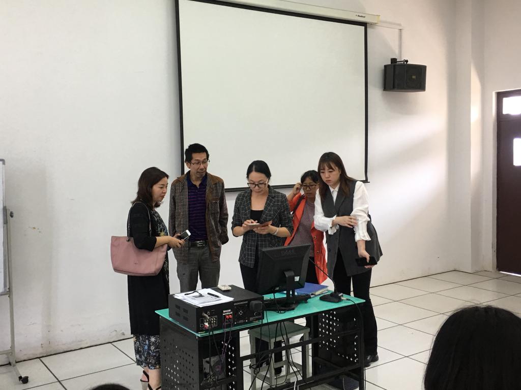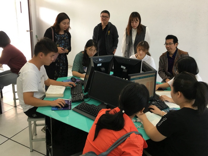 中文系团队一行还观摩了台科院文秘专业负责人赵雪莲老师《秘书理论与实务实训》课堂教学。课程以上机实训为主,员工运用3D会务实训系统,制作以“低碳环保,由我做起”为主题的中国低碳环保科技峰会的会议策划,根据思维导图逐步完成整个会前、会中、会后的组织方案。考察团队实地走访了由文秘综合实训室、文秘档案实训室,文秘情景实训室、文秘心理实训室、文秘仿真实训室、文秘会务实训室、形体实训室七个实训室组成的文秘实训中心。各实训室分工明确,设施配备齐全。