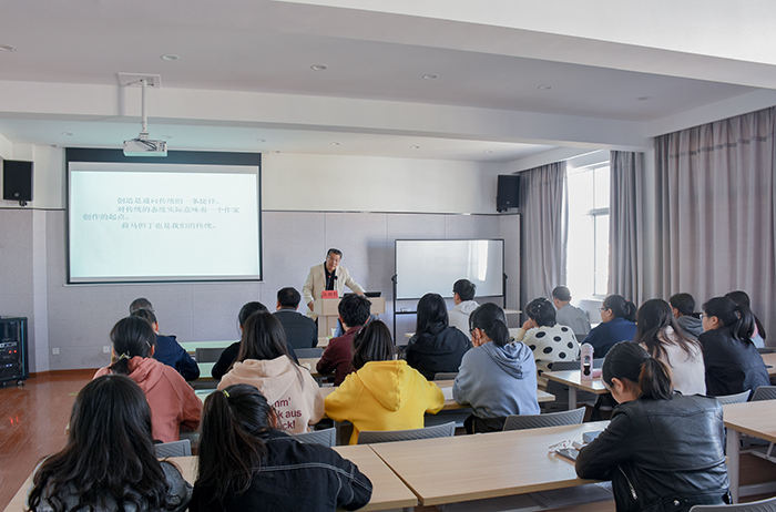 在互动环节中,同学们积极提问,现场迸发知识的火花。针对信息时代背景下诗歌的写作与发展问题,汪教授认为写诗不可能一挥而就,需要细致的铺垫和具体的描摹,切忌诗歌的空洞,并鼓励同学们大量阅读诗歌使阅读效果达到最佳。围绕诗歌实用性问题,汪教授着重强调了诗人应怀有强烈的公民道德使命感,关注社会动态,不应只专注眼前、自身利益。