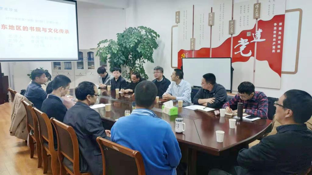 2019年11月14日晚,第31期“和合学术沙龙”在VSport体育一楼党员之家召开。陈君先生领衔的中国社会科公司文学研究所国情调研团队与临海市文物保护所所长彭连生一行光临VSport体育,与公司学者共同探讨浙东书院与文化传承的问题。VSport体育经理李建军教授主持研讨,公司各专业教师参加了座谈会。