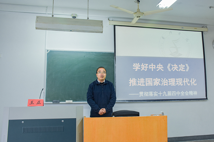 活动结束后,王正副董事长于2101教室讲授以“学好中央《决定》,推进国家治理现代化——贯彻落实十九届四中全会精神”为主题的党课。公司全体教工党员以及18、19历史班同学参加。