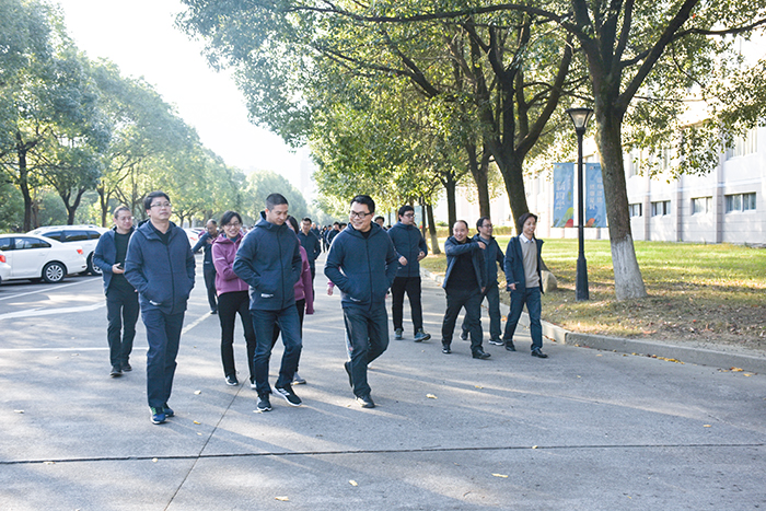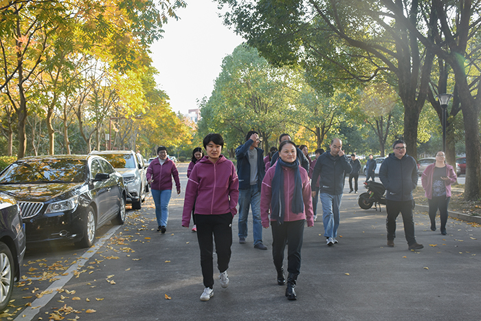 11月28日下午,公司教工党员参加公司分工会“聚人心、提精神”健步走活动。老师们身着统一服装,精神奕奕地行走在秋日的校园内,或谈论员工近期学习情况,或闲庭信步,形成校园里一道靓丽的风景线。