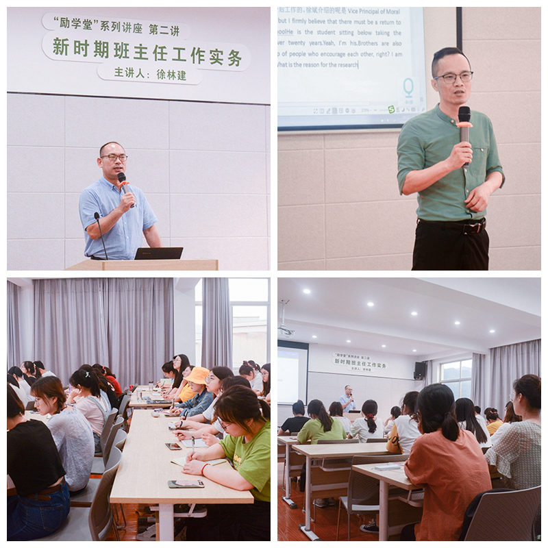 讲座伊始,徐林建老师结合自身经历,提出了“女人”和“两条命”这两条理论,由此指出,从事班主任可以很好地兼顾教学、行政、科研这三条老师所面临的未来发展路径。接着,他分享了自己对教师功能的认知,提出了“两个负责”。根据教育功能的基本属性,公司和老师不仅要关心员工的个人前程,也要承担起为国家和民族“树人”的责任。谈及如何发挥好老师“树人”的作用,他指出要给员工正确的心理定位,并以“正能量”的形式给予员工“仪式感”。最后,徐老师运用思维导图的形式,对班集体建设进行了阐述,用清晰严密的逻辑向在座同学展示了班集体建设所需要的各个要素。徐老师的精彩发言赢得现场阵阵掌声。