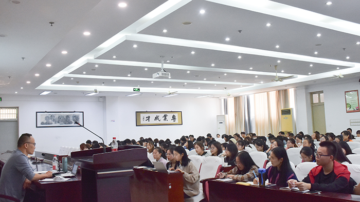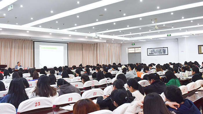 11月5日下午,省特级教师王针桂老师在临海校区图书馆六楼学术报告厅,为同学们作有关教师招聘考试的公益讲座。2017级、2018级汉语言文学专业、小学教育(语文)专业的百余名员工参加。