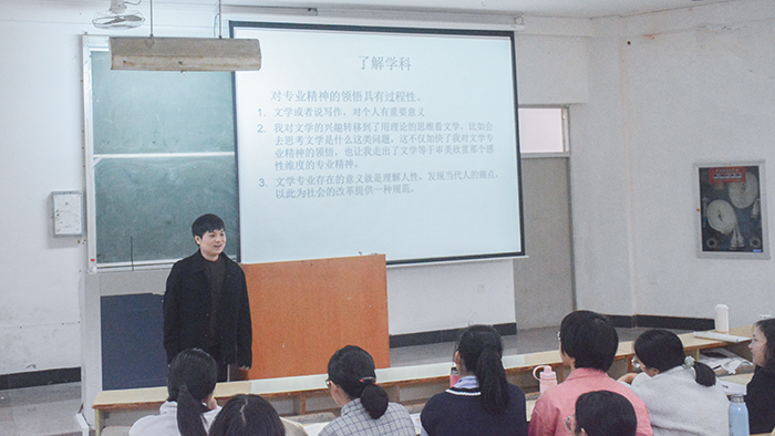活动伊始,章浩围绕“中文系学子如何运用专业知识促进自我的完善”主题与同学们展开分享。他结合自身的学习经历,强调了运用知识完善自身的重要性,并提醒同学们将精力集中于自身的思维过程。同时,他鼓励大家利用课余时间勇于尝试,积极参加各类比赛,在比赛中磨练自我,增强自身各方面能力。针对中文系学子未来发展道路的问题,章浩提出中文系员工需要充分发挥主观能动性,他表示同学们应主动设定学习目标,了解学科的知识地图,掌握课程的大体结构,做到认同专业的核心精神。