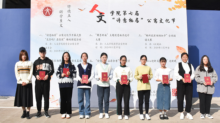 刘丽娟老师在致辞中表示,公寓文化节作为一个展现自我的平台,良好的公寓文化则体现同学们的精神价值取向,她希望人文学子以饱满的热情积极投身于公寓文化建设中去,并在此过程中学会自我教育、自我管理,以深化素质教育、彰显人文精神,发现老员工活的美好。最后,刘丽娟老师为上一年获“特色寝室”荣誉的寝室颁发证书,并鼓励同学们以此为榜样推动寝室文化建设。