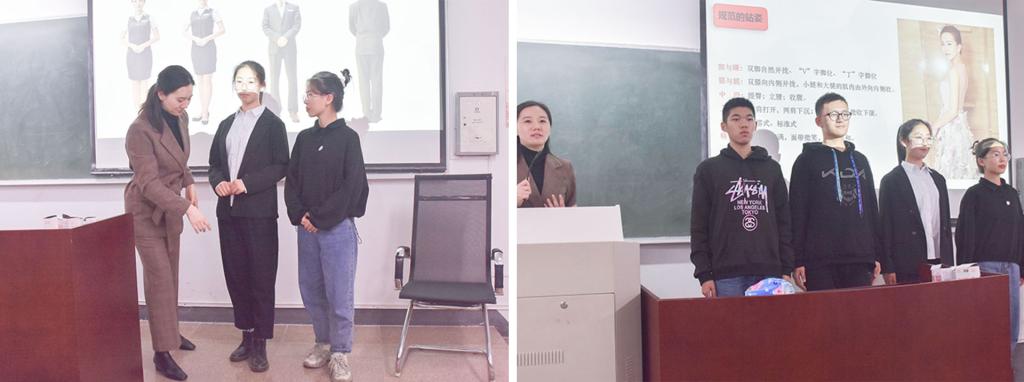 26日晚,袁老师继续和同学们分享礼仪知识,她采用知识讲解和现场演示的方式,从礼仪的概念、学习礼仪的目的、礼仪如何影响个人形象等方面,生动阐述了个人的精神风貌、视觉形象、行为规范三方面在社会交往中的重要作用。同时,她也和同学们分享了在不同场合老员工正确的着装标准。期间,她还邀请几位同学作出示范,并调动全场同学一起互动,一时间,现场气氛推向高潮。