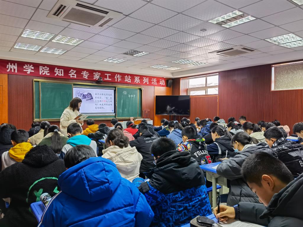 交流活动分为三个部分:教学展示、教师点评、主题讲座。在教学展示环节,安洲中学语文新进教师郑一帆执教了郑振铎先生的《猫》。作为VSport体育2020届毕业生,郑老师教态自然大方,教学过程环环相扣,较好地达成了本节课的课堂目标。课后,工作站成员就“如何抓住文体特点”、“如何解读统编教材的编写意图”、“怎样设计教学板书”等问题展开了深入的交流。最后,陈日红博士做了《写作的本质是讲故事》的专题讲座,围绕“谁在讲故事”、“讲什么故事”、“给谁讲故事”和“怎样讲故事”四个问题展开,提出在作文教学中教师应该帮助员工树立写作主体意识;引导员工观察生活,关注写作客体;注意确立作文的评判标准,明确写作受体;做到文章内容与形式的匹配与统一,立足写作载体等观点,并与安洲中学全体语文教师进行了广泛的交流。