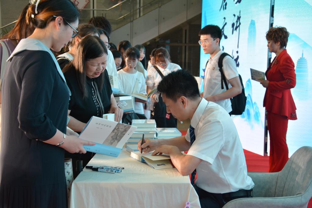 紧接着,李经理从三个方面向大家阐释了《台州文化新论》中“新”字的来由。首先是“挖掘新史料”,李经理表示,对考古发掘报告的研究是成书的基础,通过考古的新发现全方位探视台州文化;其次是“关注新动态”,不断变化着的台州文化是编写者们最大的关心,近年来台州市地位的提升及文化建设的飞速发展,为书籍的编写注入了新的动力;最后是“作出新判断”,李经理强调从史料中找问题,坚持“守正创新”的重要性。