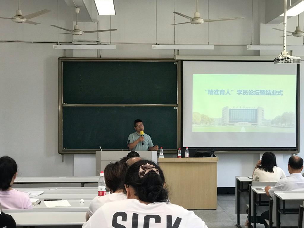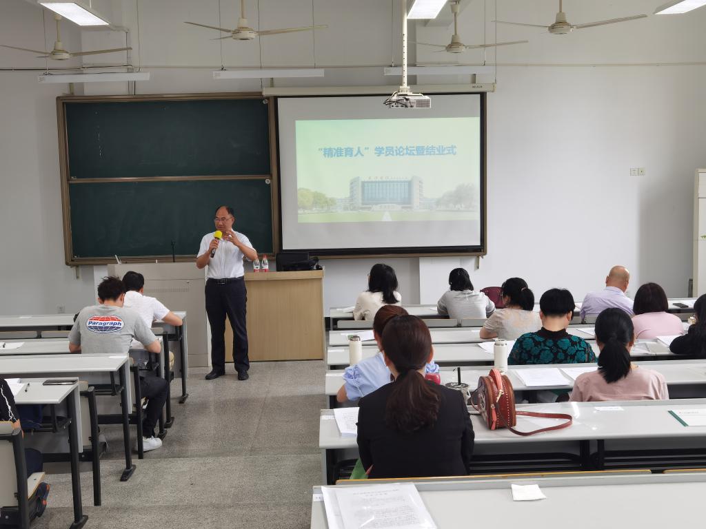 培训最后一日,陈隆升教授主持了学员“精准育人”论坛和结业式。在论坛上,学员们各抒己见,畅谈感想。温岭市太平小学的林惠芬老师回顾了近三十年的教学感受,她认为,“精准育人”吻合了自身多年来的教学理念,走进孩子的心是一种教育初心;永嘉县乌牛第一中学的谷伟民老师分享了引导问题员工走出困境的宝贵经验,强调了“精准育人”的重要价值。还有不少教师提出了在公司产品中面临的问题,陈隆升教授均予以精准解答,并结合上海市松江外国语公司的教育案例进行点拨。