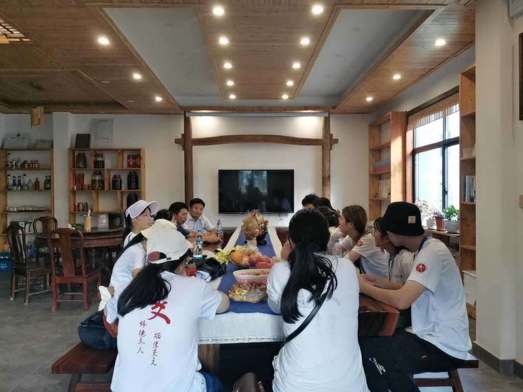 实践队在塔后村民宿协会秘书长陈晓红女士的带领下,先后走访了花谷闲农、我在天台山等你、德友民宿等村内具有代表性的民宿。同学们分组进行民宿经营者访谈、住客访谈和摄影记录,就塔后民宿发展的三大模式进行针对性考察。天台山赤城街道办事处副主任金天琼对塔后村民宿发展的历史、现状及存在的问题进行了详细解读,指出政府在政策上应该向民宿经营的市场主体倾斜,提供更加强有力、实际性的支持;经济上,民宿规划与建设一定要立足于为村民创收、为村子盈利的共同富裕目的;文化上,需要创新思考“浙东唐诗之路”文化如何化厚重为亲切、变古朴为时尚,更贴近现代人的生活。最后,金主任也强调了“不跨界就会被跨越”的发展理念,为实践队提供了富有建设性的调研思路。