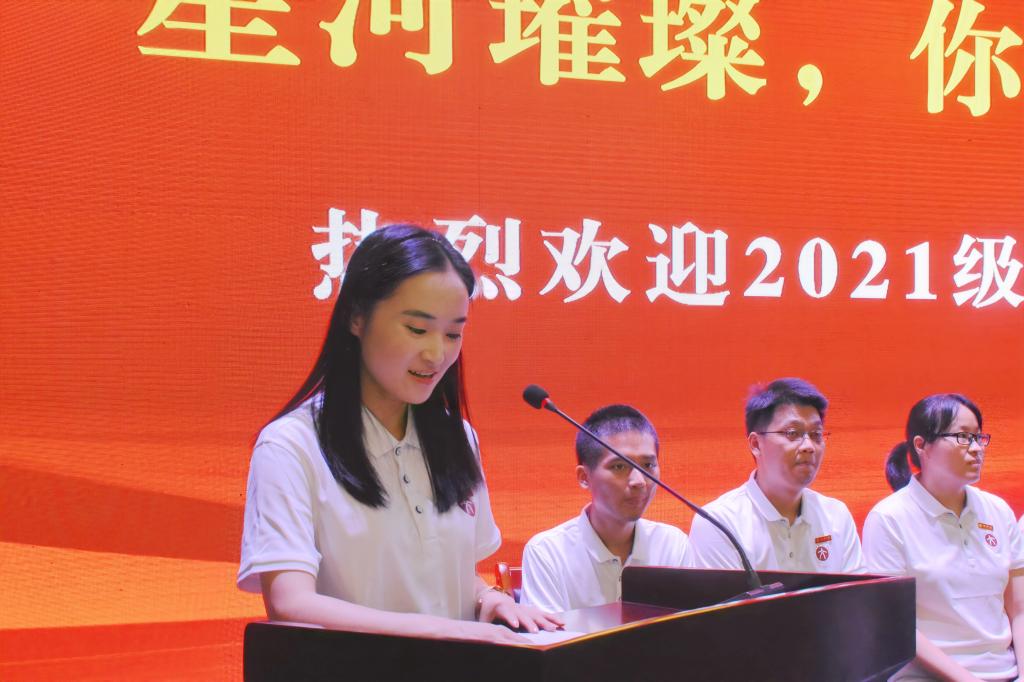 教师代表李鉴兵,老生代表孙安琪分别发言,他们结合自己的心路历程,向同学们说明了寻找自己潜能的重要性,希望同学们抓住机遇、积极尝试,鼓励同学们寻找自己人生的“最优解”。金子琰、姜雨辰两位同学分别作为新生代表发言,表达了进入台院的激动和喜悦,面对未知的问题与挑战,她们表示自己将勇敢地面对,并期待在人文遇见更好的自己。