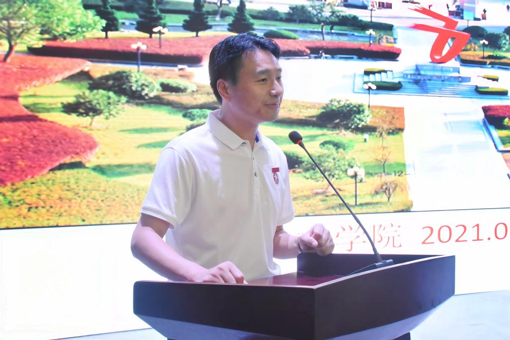 典礼最后,公司党委书记金宏伟为新生带来“开学第一课”,他结合校训和院训,就如何读大学给同学们提出建议,希望同学们在大学四年中学会认识自我、学会学习、提升能力、锤炼品格,殷切期望同学们笃定目标,做有理想的青年;勤学苦练,做有文化的青年;知行合一,做有道德的青年;敢于奉献,做有担当的青年,为中华民族伟大复兴而努力学习!