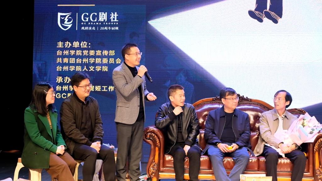 演出结束后,指导老师与新老社员们在舞台上围坐,大家追忆20年来GC剧社的发展历程,感怀在剧社里成长成才的美好年华,学长们分享了创办剧社的初心,鼓励年轻的社员坚守剧社的人文情怀和韧性精神。