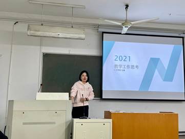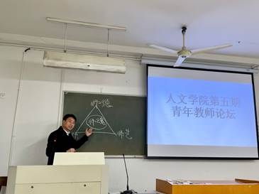 论坛伊始,新晋优秀教师代表王健老师分享了教学成长的经验和体会。她向在场诸位介绍了现代汉语课程先进性、基础性、专业性的特点,同时向大家分享了自己的教学方法与教学反思。王老师表示教师不仅要学会用合理的方式和手机“抢员工”,而且要找到适合自己的教学状态与教学风格。她指出,合理安排教学任务以及进行良好的团队合作是一位优秀教师必备的能力。