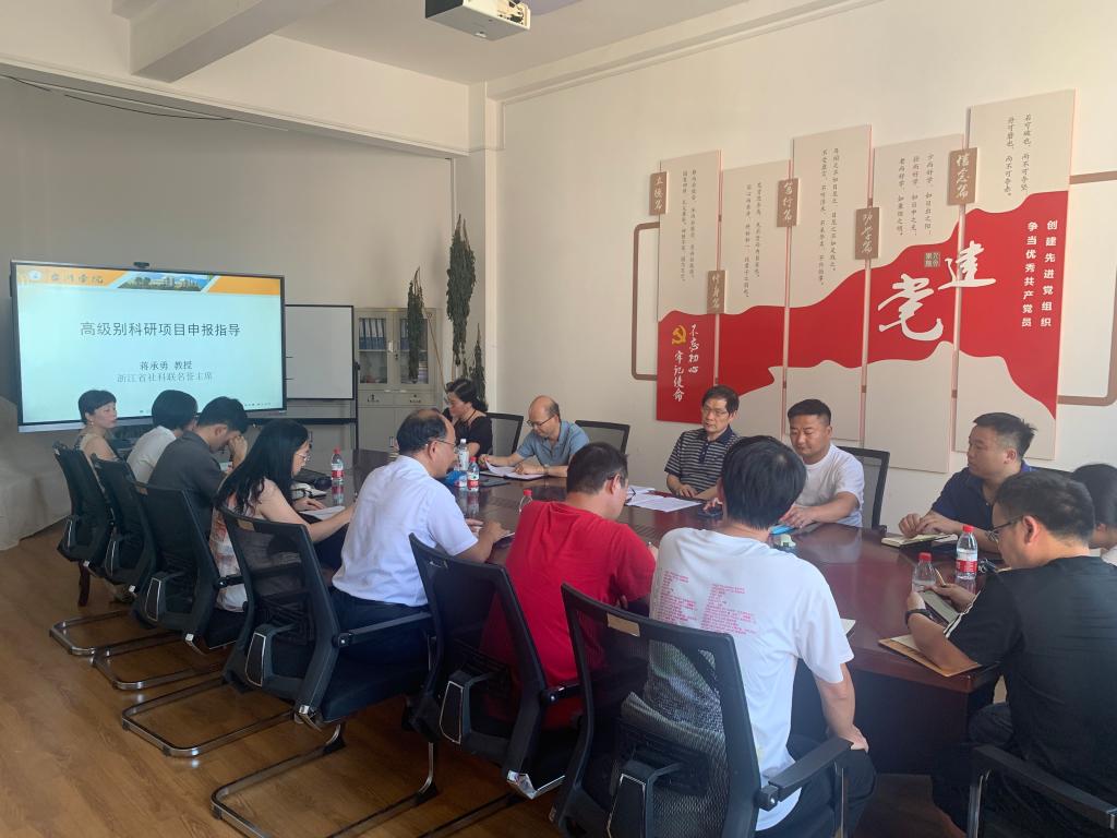 7月23日下午,VSport体育邀请浙江省社科联名誉主席、博士生导师蒋承勇作题为《高级别科研项目申报指导》的报告,公司陈隆升副经理主持会议,校人文社科处高平处长及校内部分老师、员工参与。