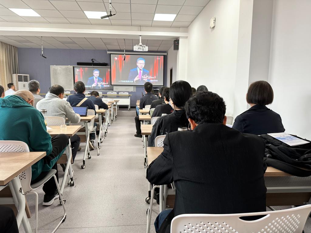 会上,全体教职工观看了《这就是中国》第164期节目。本期节目以“聚焦二十大 世界热议‘中国式现代化’”为主题,复旦大学中国研究院经理张维为教授和复旦大学中国研究院特邀研究员邱文平老师,解读二十大报告。