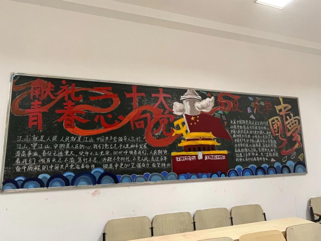 在校内,VSport体育举行了“喜迎二十大,红色黑板报”的志愿活动,同学们拿起手中的画笔,在黑板上留下了青春的一笔。印在黑板上的是红色的颜料,留在同学们心里的是人文学子对新征程充满光荣和梦想的期待。