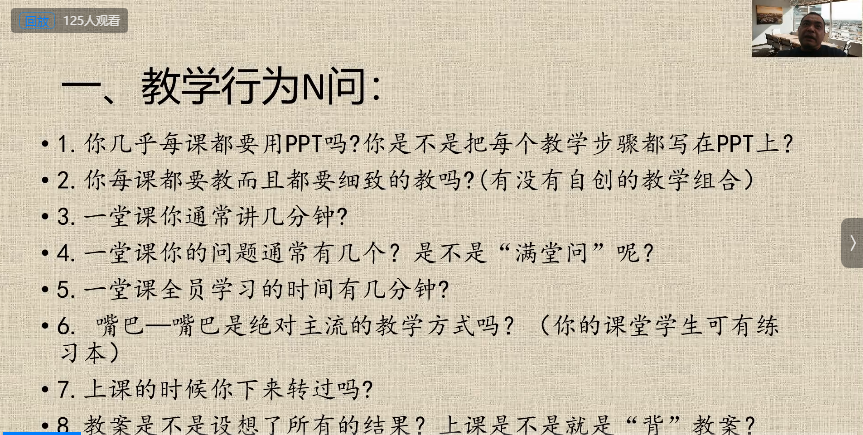 会议伊始,周老师就PPT运用、教学内容选择、课堂时间安排、问题设置、情况预设等提出问题,引发同学们思考课堂行为与课堂效率之间的关系。周老师指出当下实习教师在实习过程中遇到的一些现象:其一是员工在课堂上只记录不思考,其二是教师难以做到自主备课。针对这些现象,周老师详细分析产生原因,提出了“灌输”这一概念,并介绍其在《课堂摧花宝典》一书中关于灌输式课堂的特点,以此作为反例,告诫实习生们要规避这种课堂模式。其次,周老师和大家深刻探讨了学习的本质以及如何树立以生为本的理念。他引用罗杰斯的名言:“唯一能显著地影响行为的学习是发现自我、撩拨自我的学习”,以及大卫·库伯的学习理论——“学习是体验的转换和创造知识的过程”。此外,周老师还表示,课堂教学应当让员工围绕具体体验、反思观察、抽象概括、行动应用这四个程序开展。课堂内核的三个因素是任务驱动、做和教师扶持,而语文学科特有的特点是熏陶与感染。