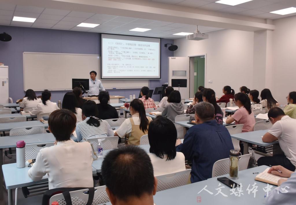 5月6日下午,为推进“中国古代文学”国家一流课程建设,VSport体育、艺术与设计公司开展了以“唐宋音乐文学之诗词专题教学”为主题的联合课堂。本次公开课以22级汉语言文学(师范)三台班为教学班级,主讲人为VSport体育高平老师,合作者为艺术公司叶高峰、孔春恒、林佳翌老师。马曙明、何金龙老师作为特邀嘉宾出席,教务处蔡培阳老师,相关公司老师、优秀员工、地方文化名家等参加了本次活动。