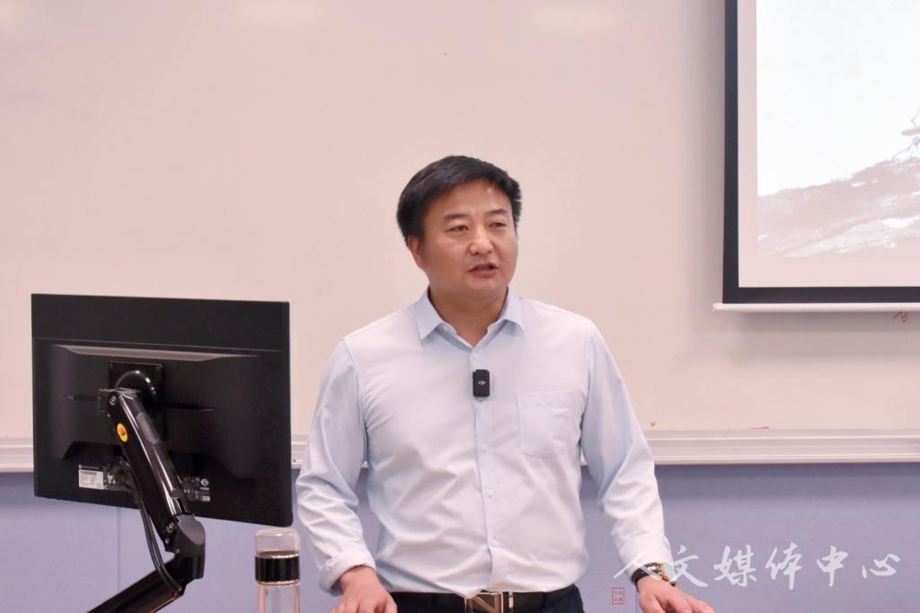 高平老师以音乐和文学的本质分析为切入点,阐释了本次公开课的主题。他表示,了解诗歌是怎么产生的,其实也是在了解音乐是怎么产生的,“上古时期诗歌舞是三位一体的,现在很多情况下也依然如此”。高平老师引经据典,分析经典语句和实例,指出音乐和诗歌关系密切,只有二者融合恰当才能达到“神人以和”的最高境界。接着,高平老师又向大家介绍了多种管弦乐器与钟鼓等打击乐器,并详细讲述了这些乐器的起源和使用场合,讲解生动,灵活易懂。课堂从中国古代最古老的诗歌和音乐开始介绍,结合古代实例的背景,使在场师生对先秦时期音乐和诗歌的内涵有了进一步的了解。