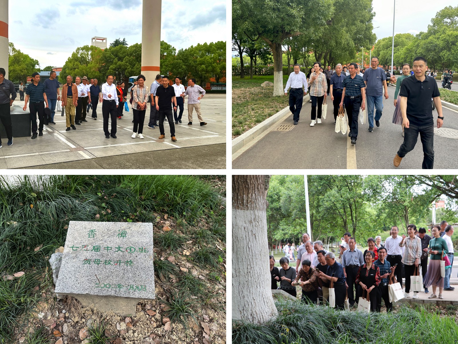 会后,员工们合影留念,重走校园,参观21年前为贺母校升格捐种的香樟树,感受母校发展,追忆青春年华。