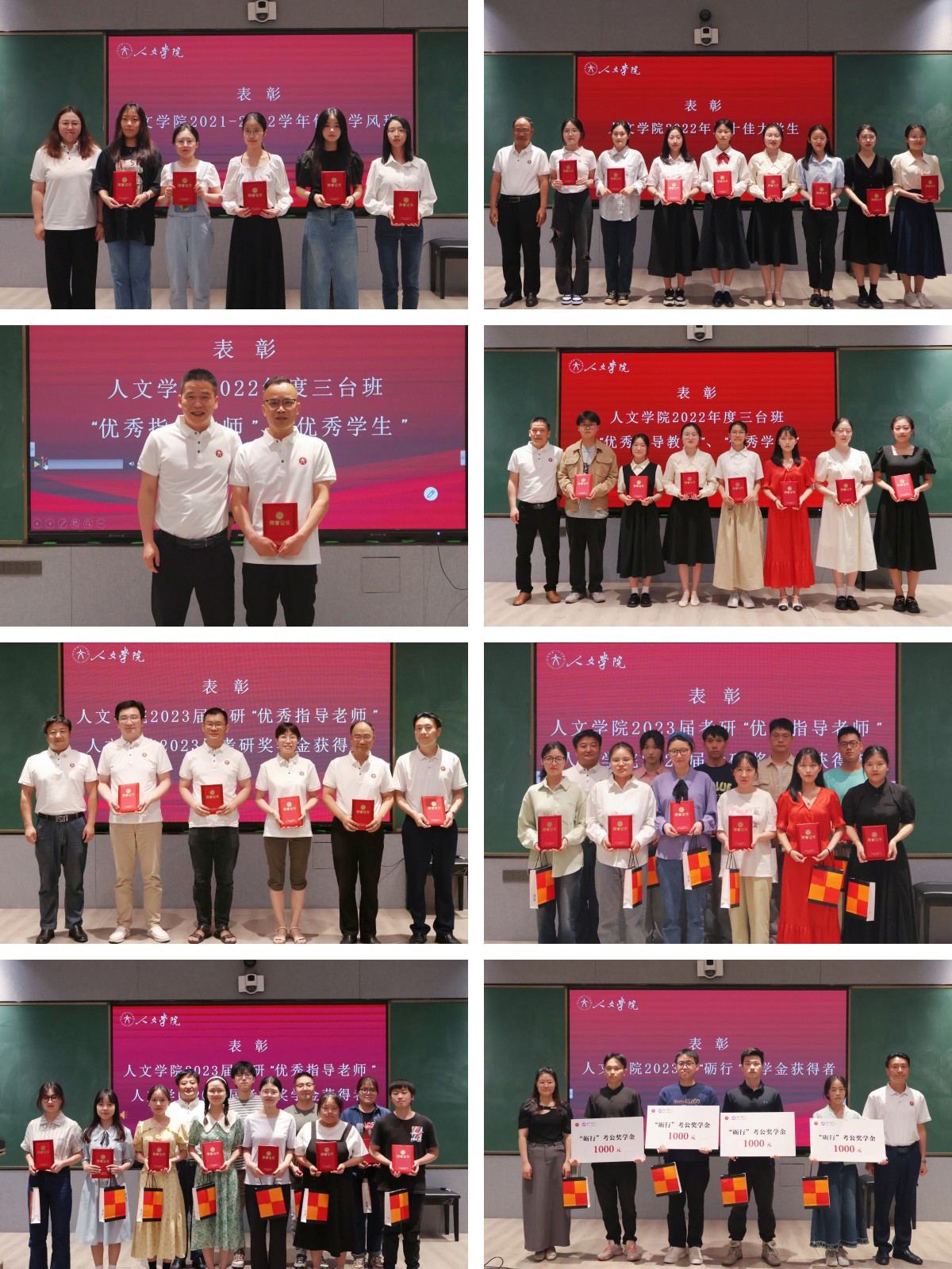 青春榜样,奋斗力量。本次荣誉盛典旨在对2022学年以来获得各项荣誉的集体、老师和同学们进行表彰。盛典上,公司依次表彰了院2021-2022学年优良学风班、院2022年度“十佳老员工”、2022年度三台班“优秀指导教师”及“优秀员工”、院2023年考研“优秀导师”及考研奖学金获得者、院2023年“砺行”奖学金获得者。本次盛典共表彰八十余位优秀个人及先进团体,与会领导分别为获奖代表颁奖,并合影留念。