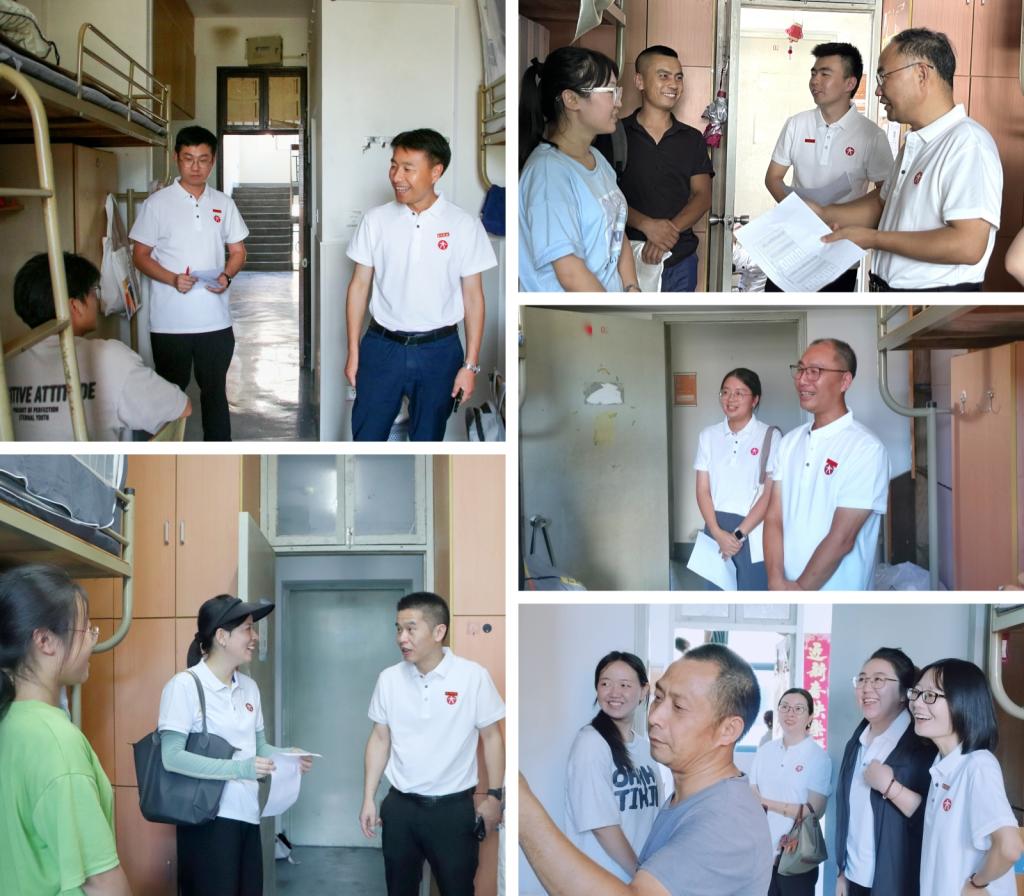 9月9日迎新当天,公司领导班子、新生班主任、辅导员等,统一身着人文文化衫,坚守在迎新一线。他们或前往寝室走访慰问,或关注新生报到进度,时刻关注新生们的需求与状态。师生间友好的洽谈不仅拉近了彼此距离,也让新生感受到了校园的温暖与亲切。