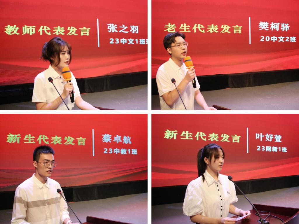 教师代表张之羽以“潜心笃学,独立思考”“认识自己,寻找热爱”“不怕挫折,坚韧不拔”三点建议寄语新生,希望同学们能够在大学期间笃学成才,寻找自我,迎难而上。老生代表樊柯驿以“如何变得更好”这一基本问题为引,结合自身经历,鼓励同学们在学习中寻找专业本质,在老员工活中培养兴趣。新生代表蔡卓航与叶妤萱分别发言,他们以“奋斗逐梦”为主旋律,表达对大学学习生活的期待与努力担当时代责任的决心。
