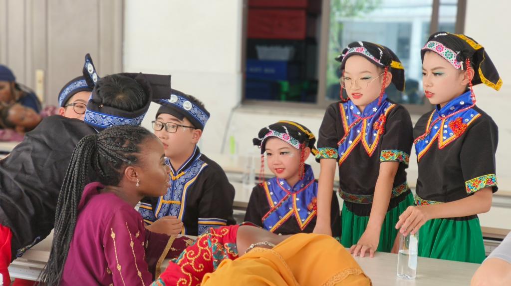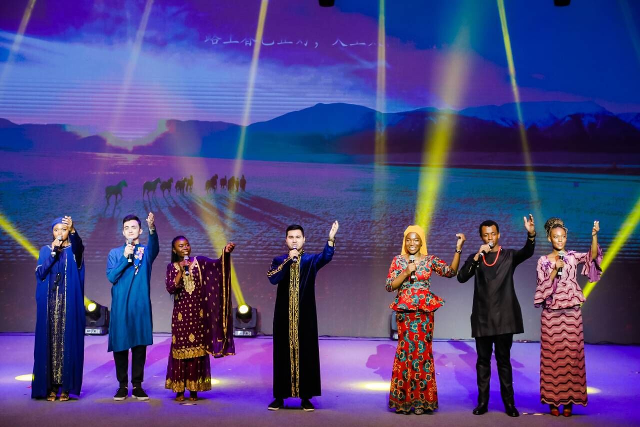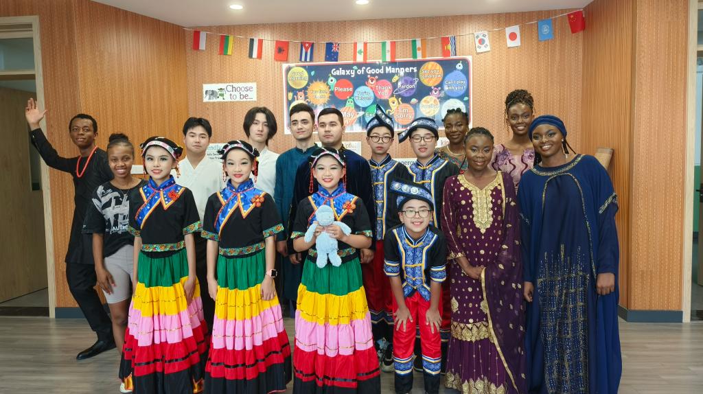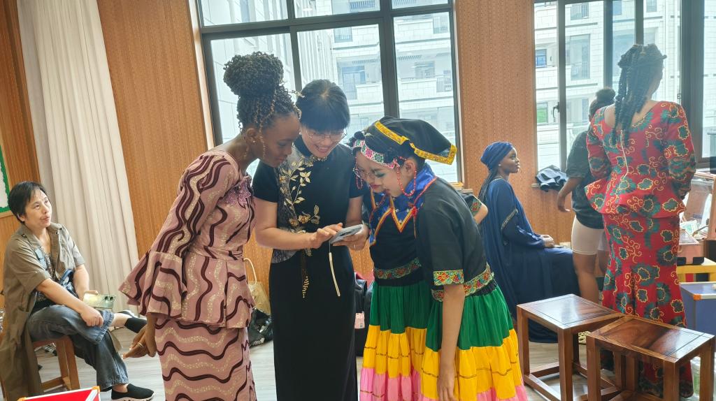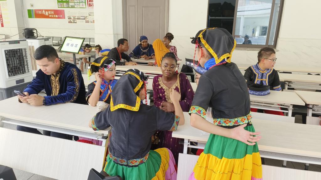 在活动现场,来自乌兹别克斯坦、尼日利亚、白俄罗斯、博茨瓦纳、加蓬等五国的台院职工代表也与其他同学亲切交流,在本次活动中串联起了不同地区、不同民族、不同国家的友谊,墙上挂着的不同国旗也象征着中国与世界的环环相扣。