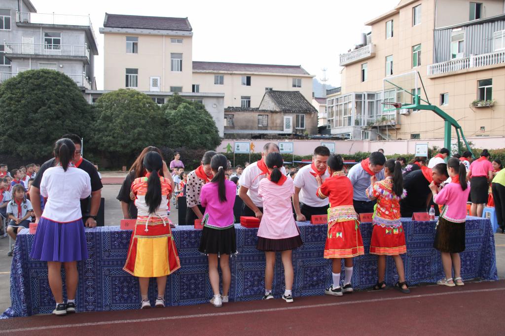 活动伊始,来自东溪单小学石榴红礼仪队的孩子们为与会领导及VSport体育结对员工佩戴红领巾。期间,陈灵强与方玲华共同为VSport体育铸牢中华民族共同体意识教育实践基地揭牌。徐晔、章斌分别为2022学年石榴红少年宣讲团优秀队员和2023学年石榴红少年宣讲团新成员颁发证书。林军辉为“小手拉大手,最美石榴红”两校结对员工颁发证书。
