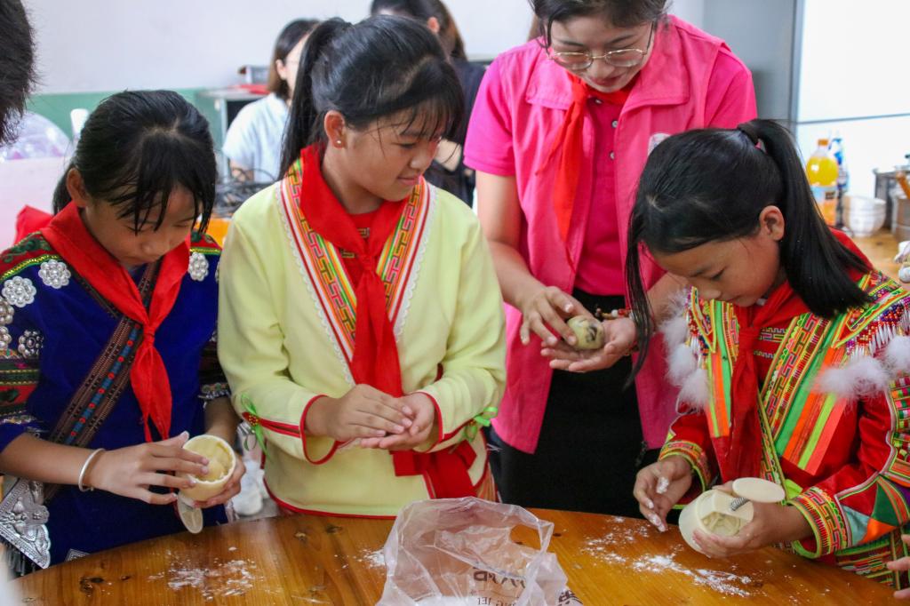 活动最后,两校结对员工一起制作月饼,提前庆祝中秋、国庆“双节”。