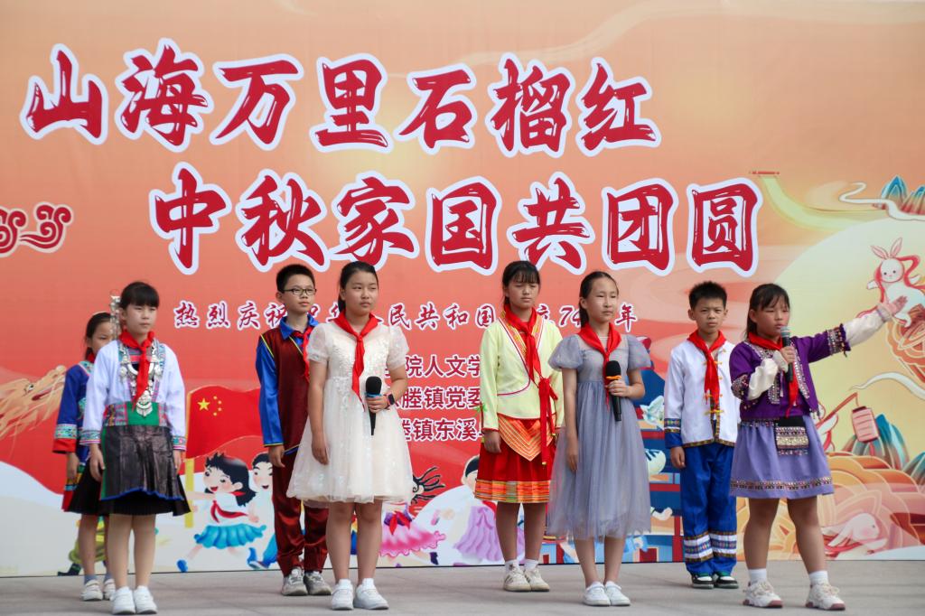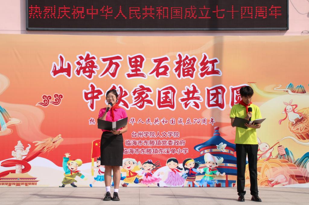 活动过程中,东溪单小学的石榴红少年宣讲团带来了演讲《小小石榴籽的临海故事》、朗诵《读中国》《祖国万岁》等节目,讲述了孩子们在临海的成长故事和扎根于国人心底的爱国之情;人文学子带来朗诵《理想》,为孩子们讲述理想的力量;话剧节目《功勋》,展现了新时代核工业人核铸强国梦的磅礴力量。