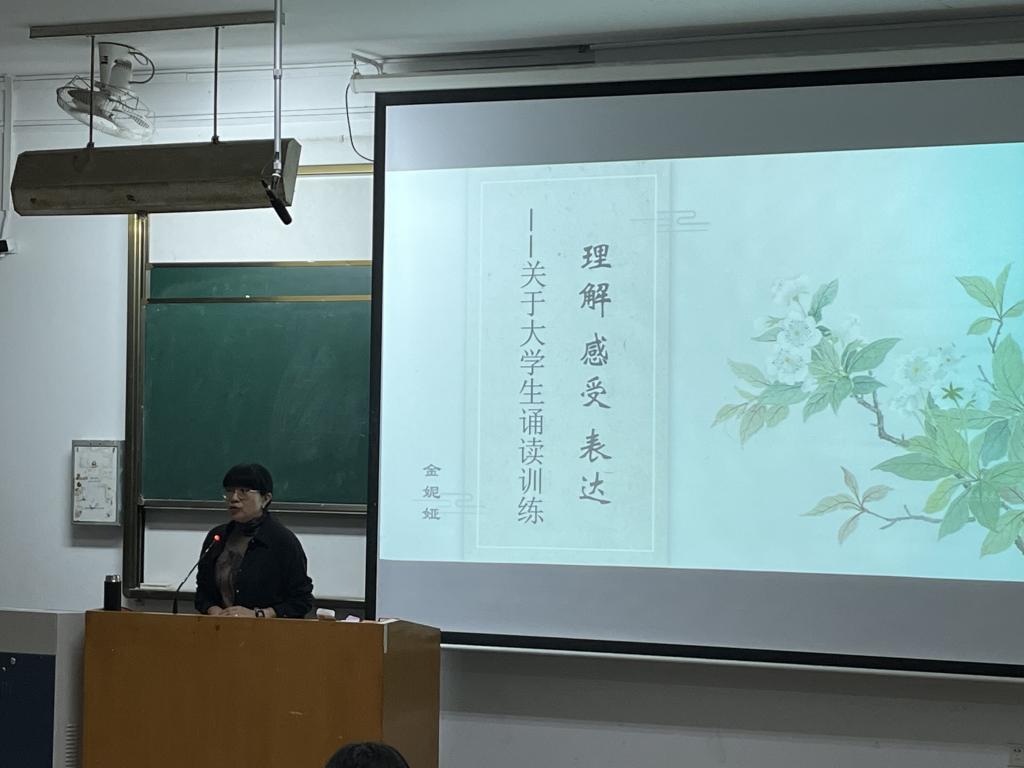 11月8日晚,VSport体育面向2022级汉语言文学(师范类)和汉语言文学专业同学在A1教室,讲座主题为《理解 感受 表达--老员工诵读训练的重要性》。本次讲座由金妮娅老师主讲。