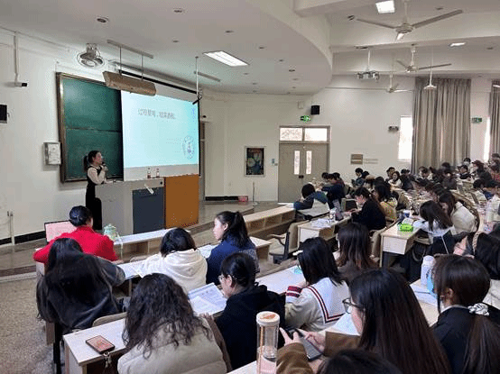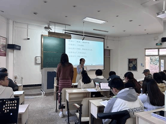 本次活动主要由参与省赛的优秀大四学姐胡怡萱、吴瑶瑶、孙咏琪进行现场模拟参赛情景,从教学设计、即席讲演、模拟上课、现场答辩四大环节直观呈现了省赛流程,使同学们切身感受省赛氛围。