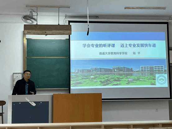 11月24日上午,为提升员工语文教学能力素质,进一步了解听课、评课,实现实践周活动的顺利开展,VSport体育于A1教室召开“学会专业的听评课——迈上专业发展快车道”讲座。本次讲座由南通大学教授陆平主讲,VSport体育黄盼盼老师主持,21级汉语言文学(师范)全体同学参加。这是2021级汉语言文学师范专业教育见习系列讲座之一,同时也是浙江省一流专业建设点 省教师教育创新试验区项目活动之一。